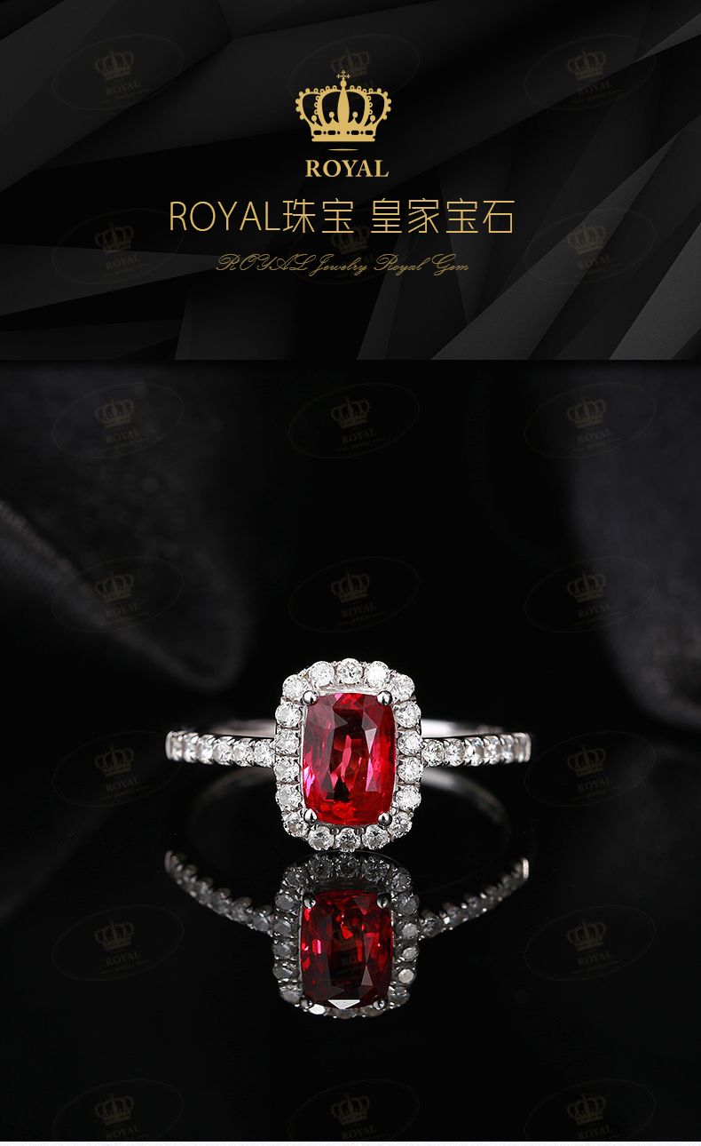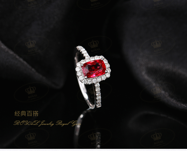 ROYALJEWELRY1.02ct红宝石戒指无烧鸽血红大台面玻璃体满火彩G18K