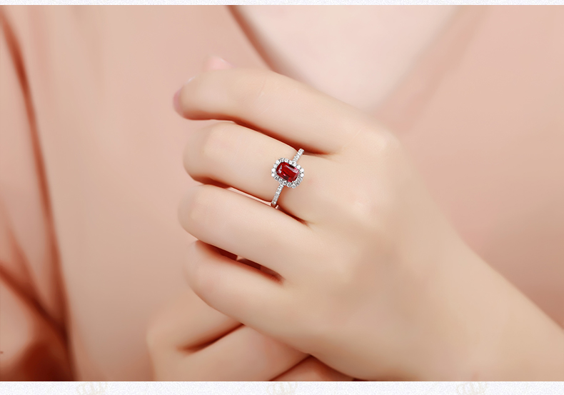 1.02克拉红宝石戒指长方形无烧鸽血红大台面玻璃体满火彩18K金钻石镶嵌