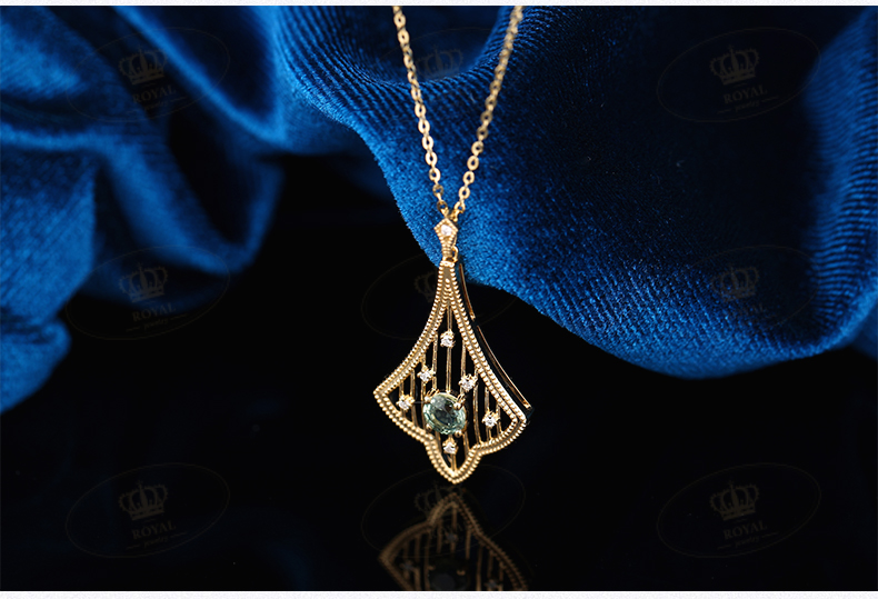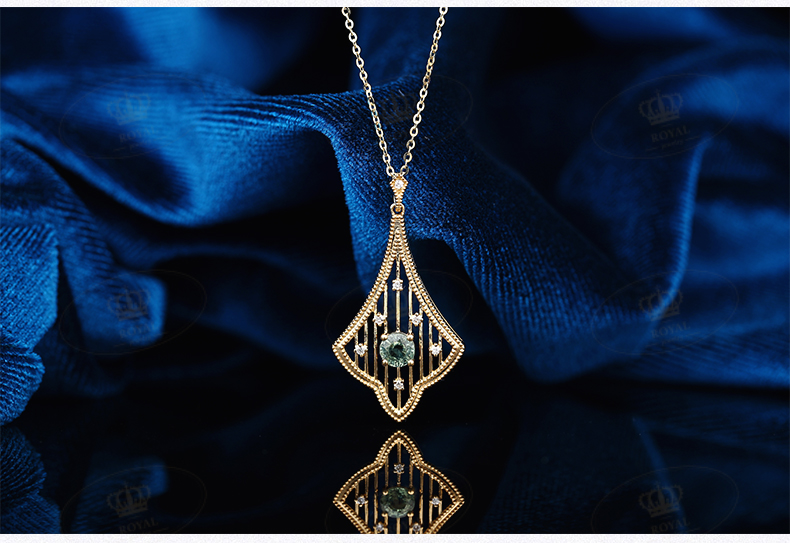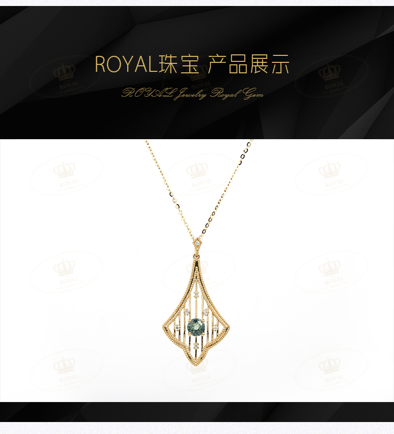 ROYALJEWELRY绿色蓝宝石项链0.528克拉绿蓝宝 钻石0.045克拉18K金