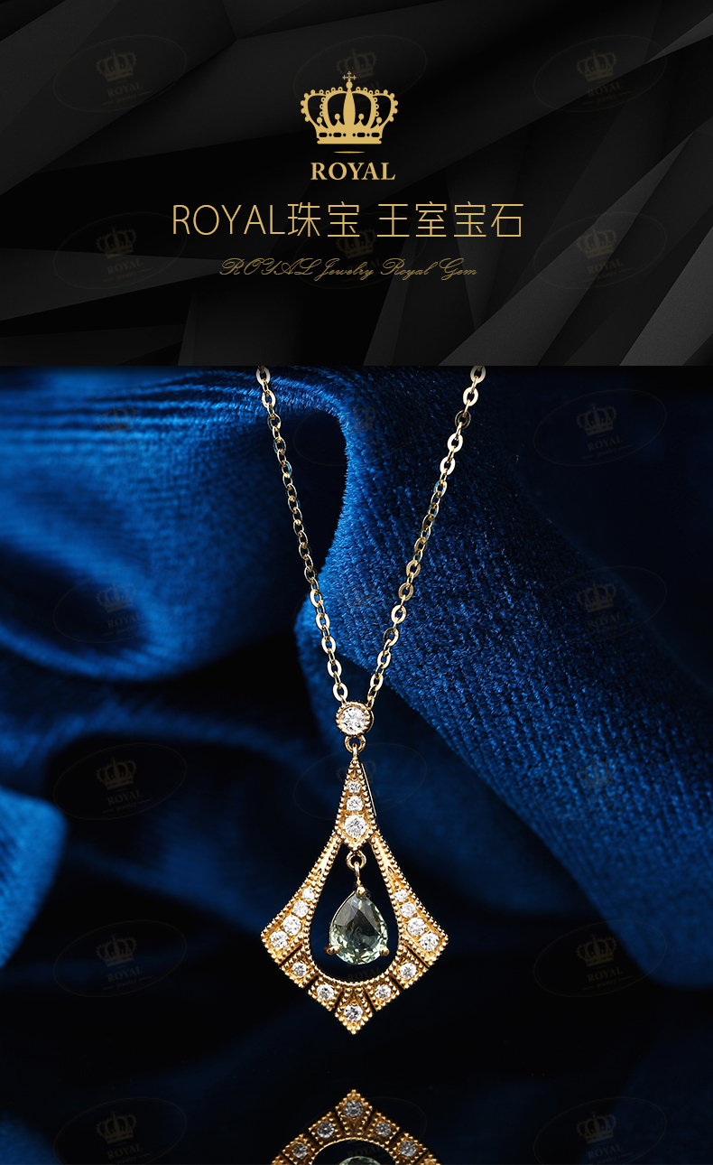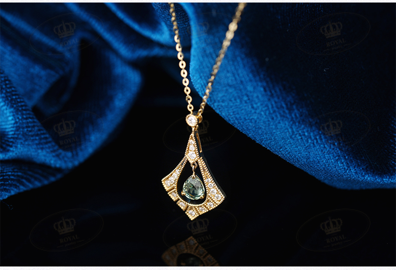 ROYAL JEWELRY绿色蓝宝石项链女款锁骨链绿蓝宝0.473CT钻石0.12CT