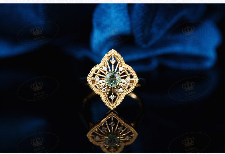 ROYALJEWELRY绿色蓝宝石戒指绿蓝宝0.496CT钻石0.05CT18K金小轻奢