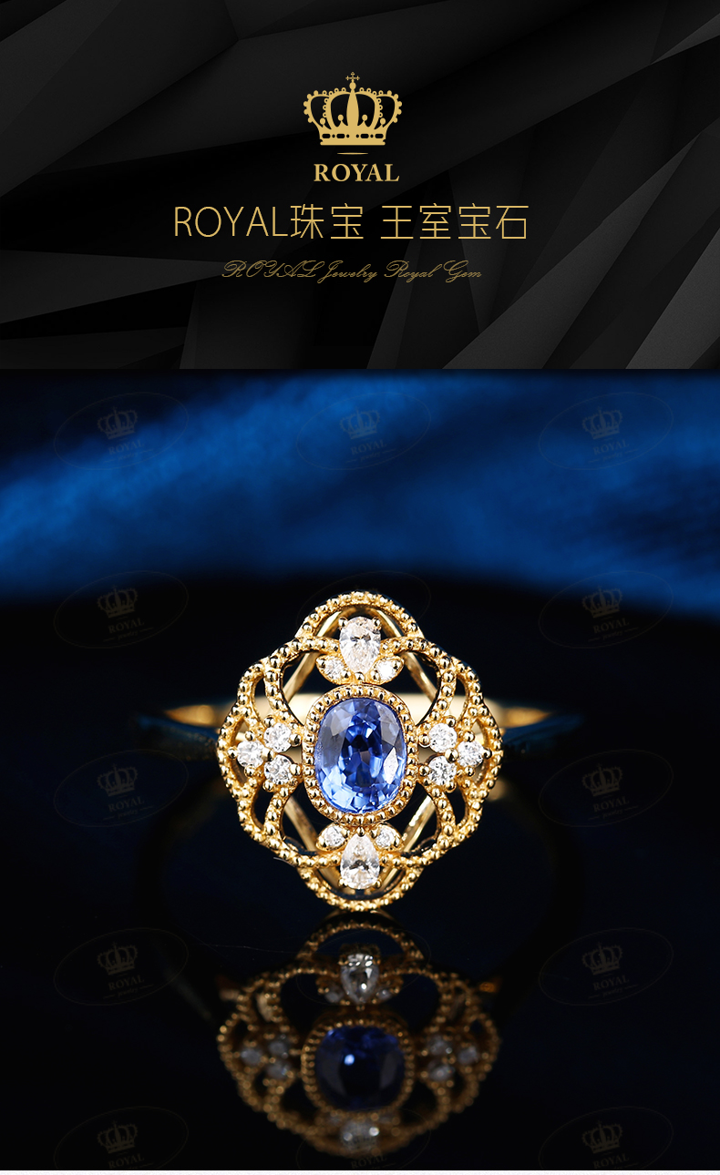 ROYAL JEWELRY蓝宝石戒指蓝宝石0.46克拉钻石0.118克 18K金 No:19818R98 ZSX5548小店主营高定珠宝,钻石,彩色钻石,红蓝宝石,祖母绿,翡翠,还有各类宝石,欢进店欣赏选购哦~欢迎来实体店试戴~~私人定制,收藏品鉴赏,私信店主V18121271984
