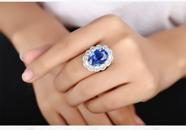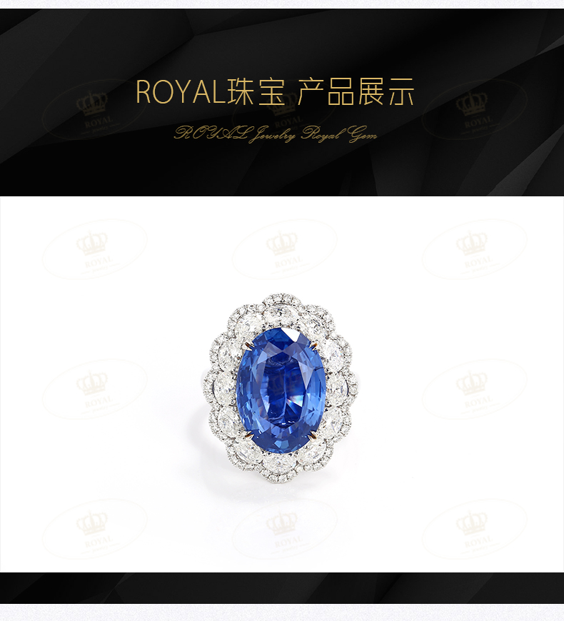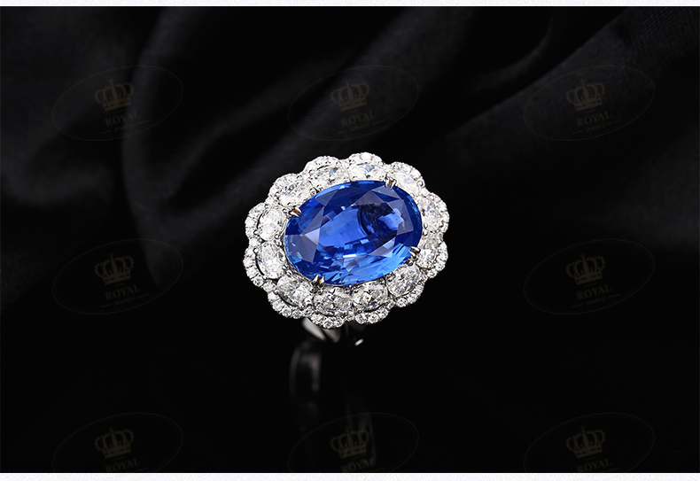 ROYAL JEWELRY10.14克拉蓝宝石戒指天然无烧蓝宝石矢车菊色马达加斯加产地钻石