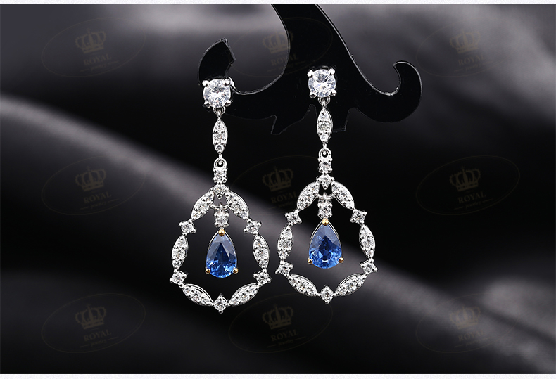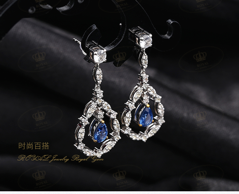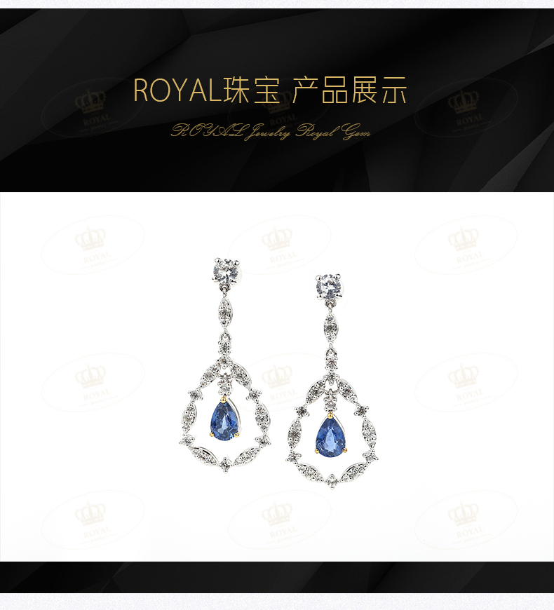 ROYALJEWELRY天然蓝宝石耳坠1.18CTBai蓝宝0.89CT18K金小轻奢珠宝首饰