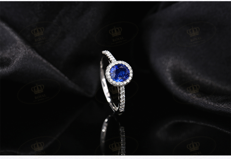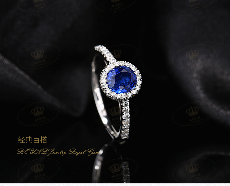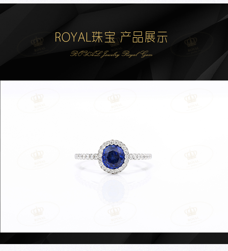 ROYALJEWELRY蓝宝石戒指女天然蓝宝石1.04CT钻石0.308CT18K金典雅大方