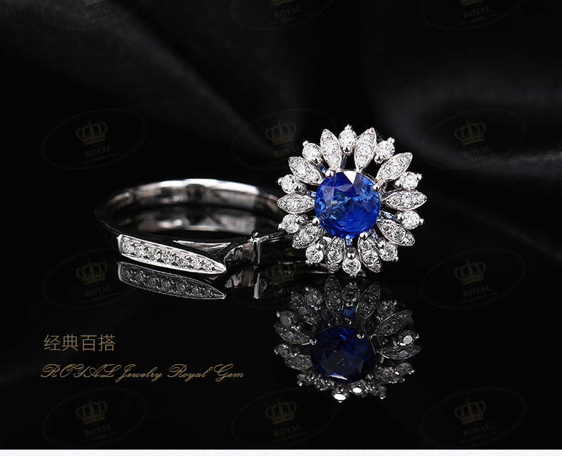 ROYALJEWELRY蓝宝石戒指吊坠两款用天Ran蓝宝石1.1CT钻石0.5CT18K金