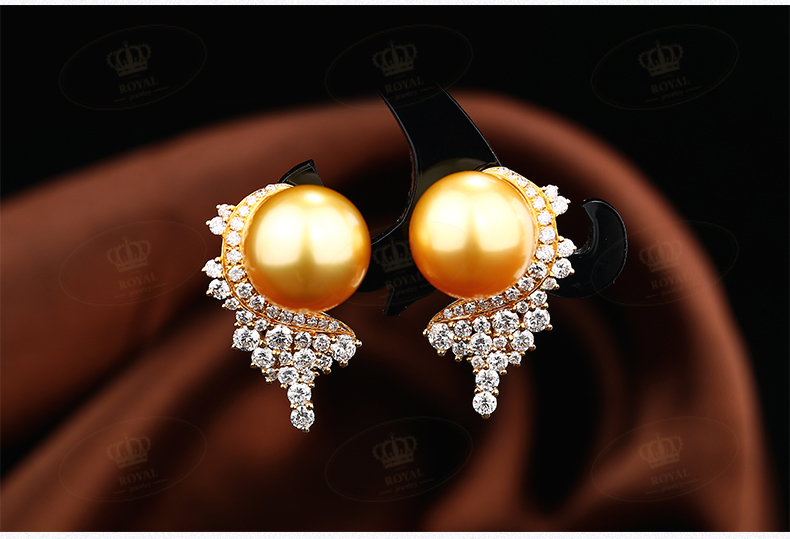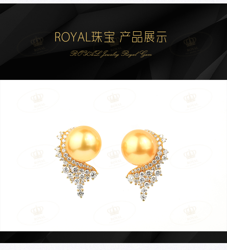 ROYAL JEWELRY南洋金珠唯美设计耳饰浓金正圆强光无暇深海珍珠珠径10.5-11.5mm钻石点缀1.808克拉18K金NO:6585124国内证书 NGTC130114高贵的金色珍珠 配上闪闪钻石点缀,光彩夺目,华丽十分喜欢的小伙伴不要错过哦~~钱没有花掉,只是换了种美丽的方式陪伴你!主营高定珠宝,钻石,彩色钻石,红蓝宝石,祖母绿,翡翠,还有各类宝石,欢迎进店欣赏选购哦~小店还有其他宝石可以定制你喜爱的款式! 私人定制,收藏品鉴赏,私信店主V18121271984