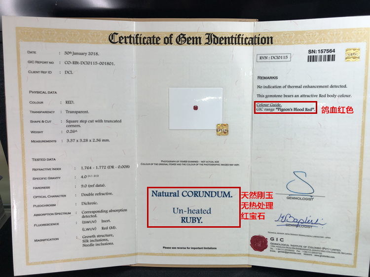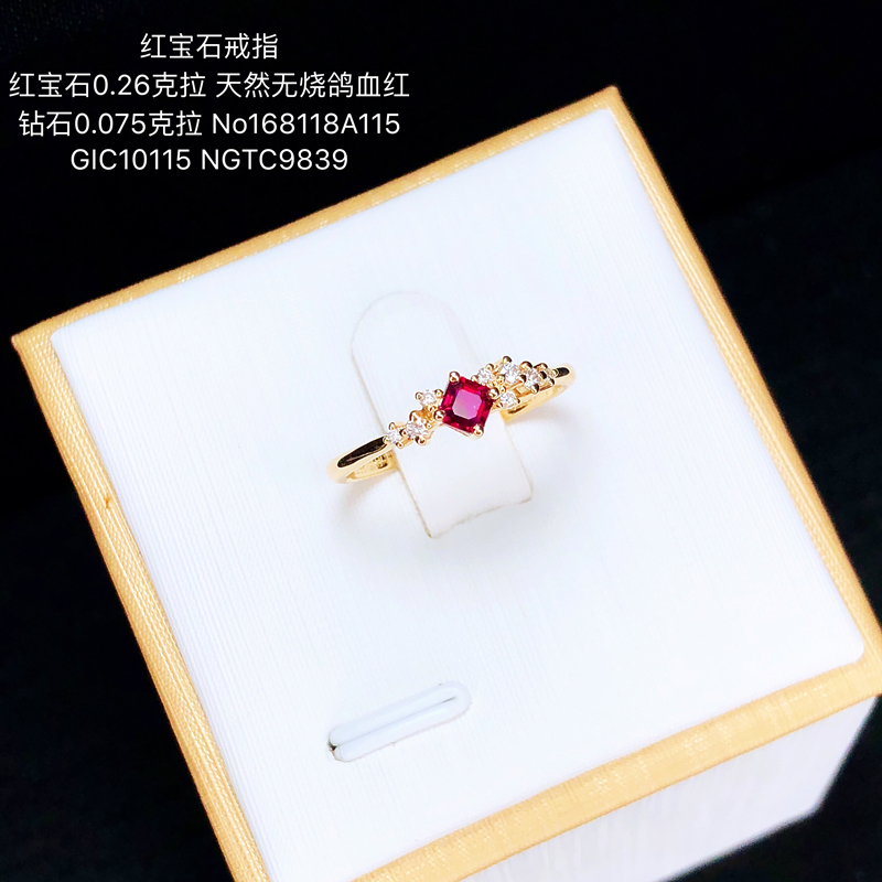 红宝石0.26克拉 天然无烧鸽血红,红宝石尺寸3.37*3.28*2.36mm