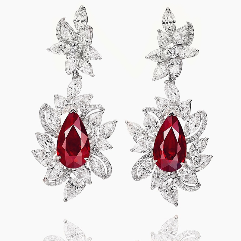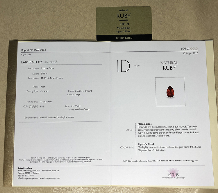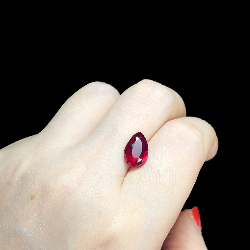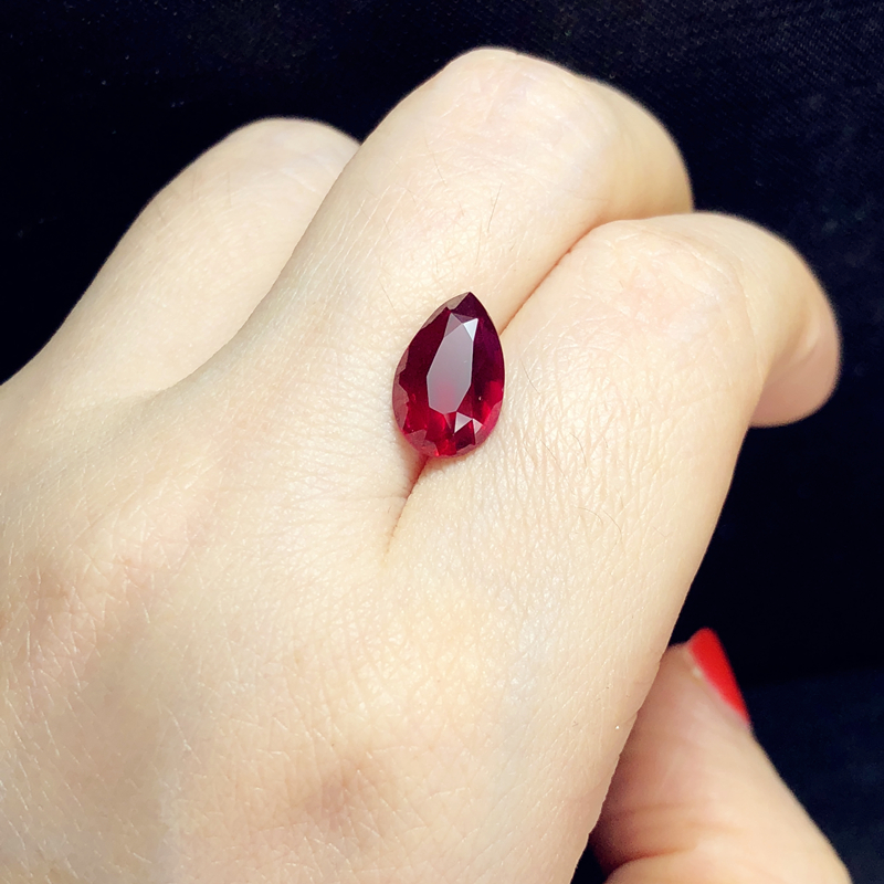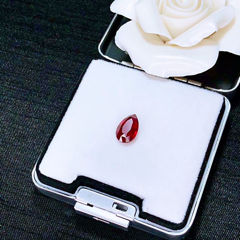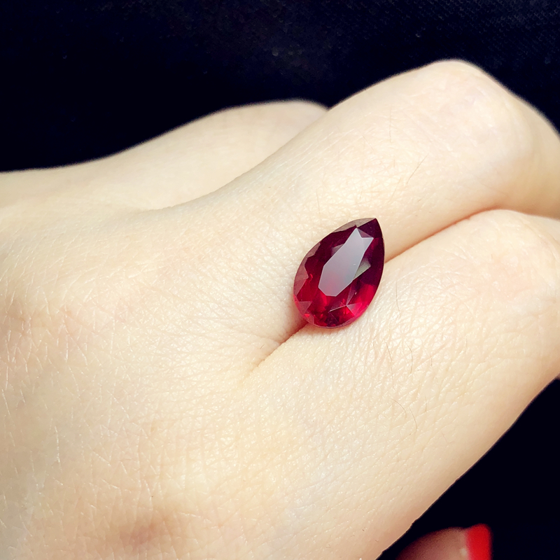 3.01克拉天然无烧红宝石鸽血红水滴形裸石戒面可定制设计戒指项链
