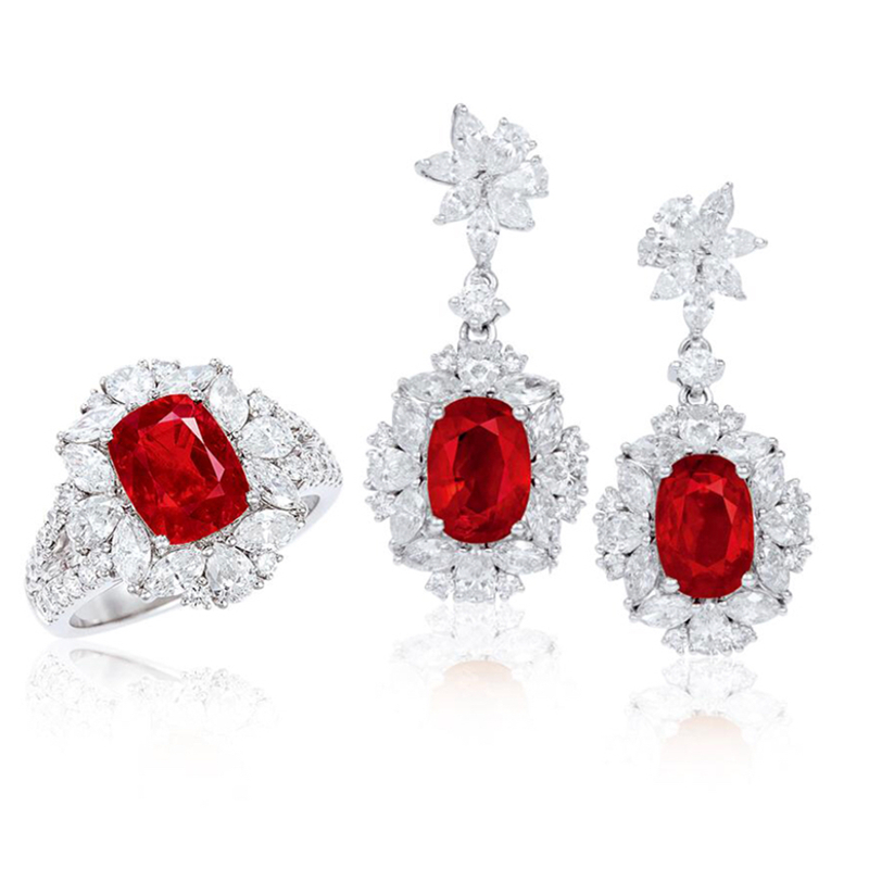 鸽血红色 高净 满火 长枕形
