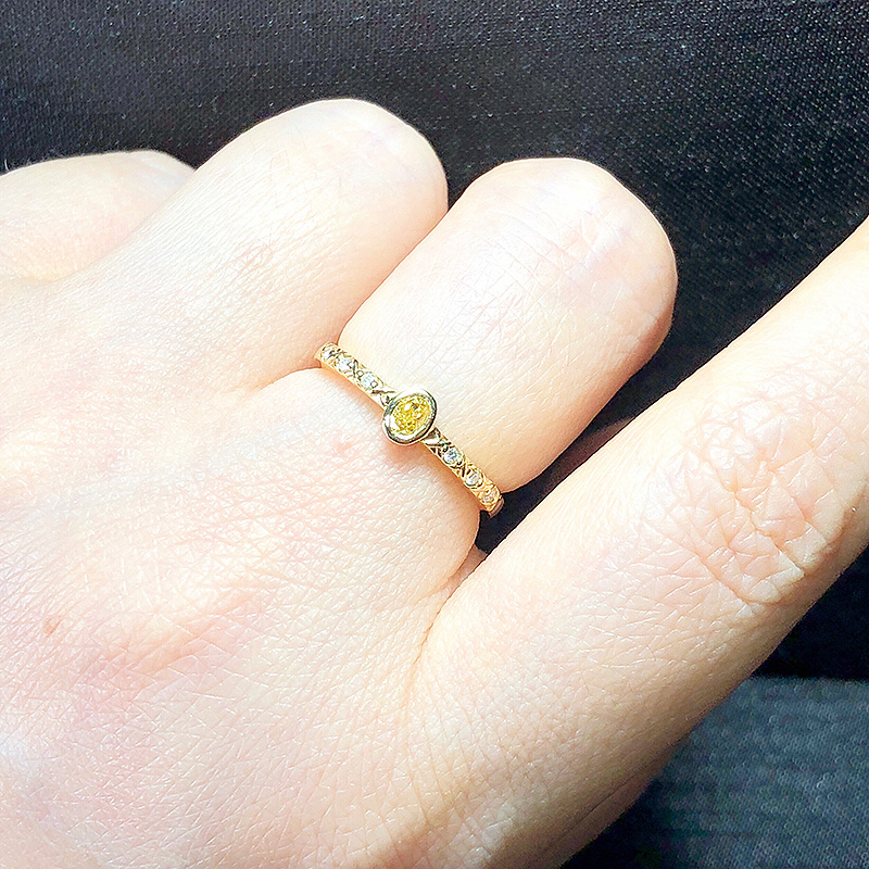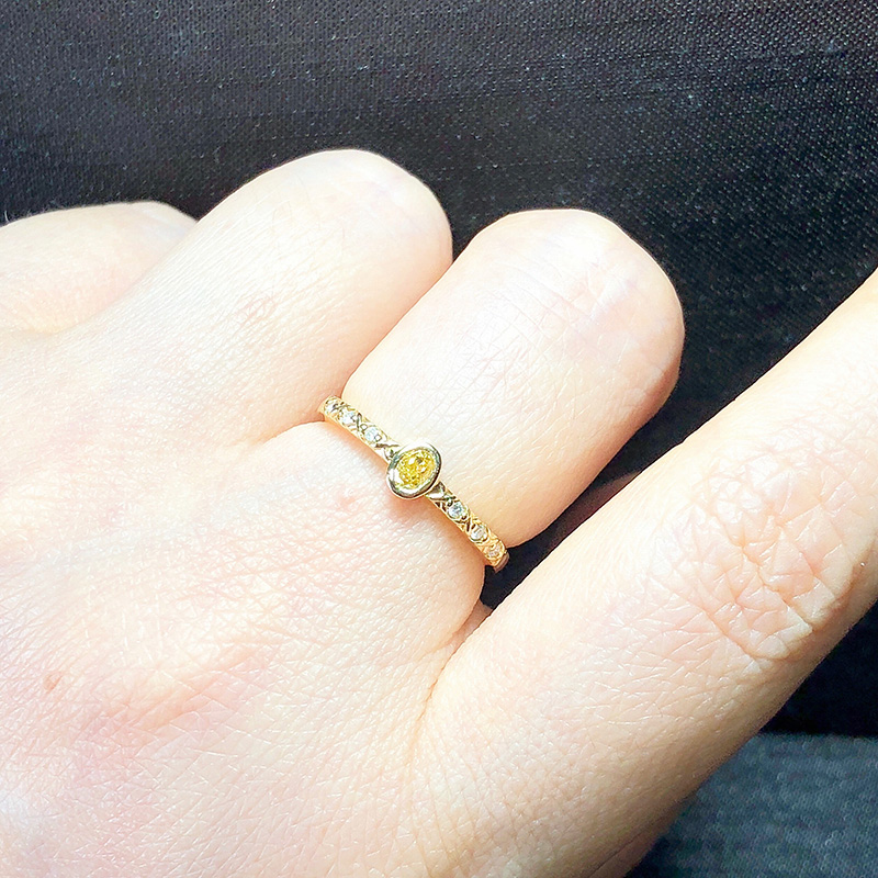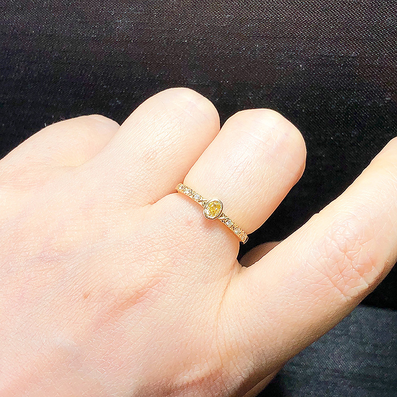 设计款黄钻小戒指,可以和其他戒指配戴,也可以单独戴,都很好看,夏天来了,快露出你的小手吧