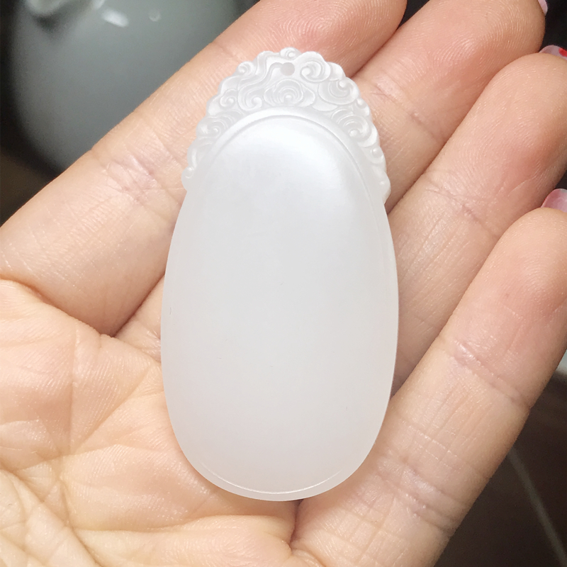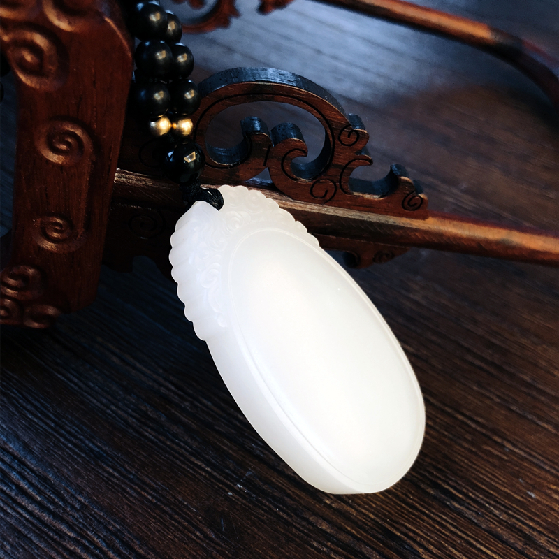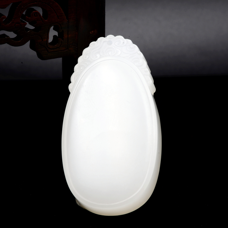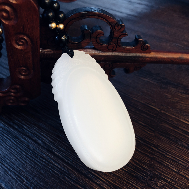 新疆和田籽料玉牌挂件吊坠无事牌椭圆云纹男女同款可定制