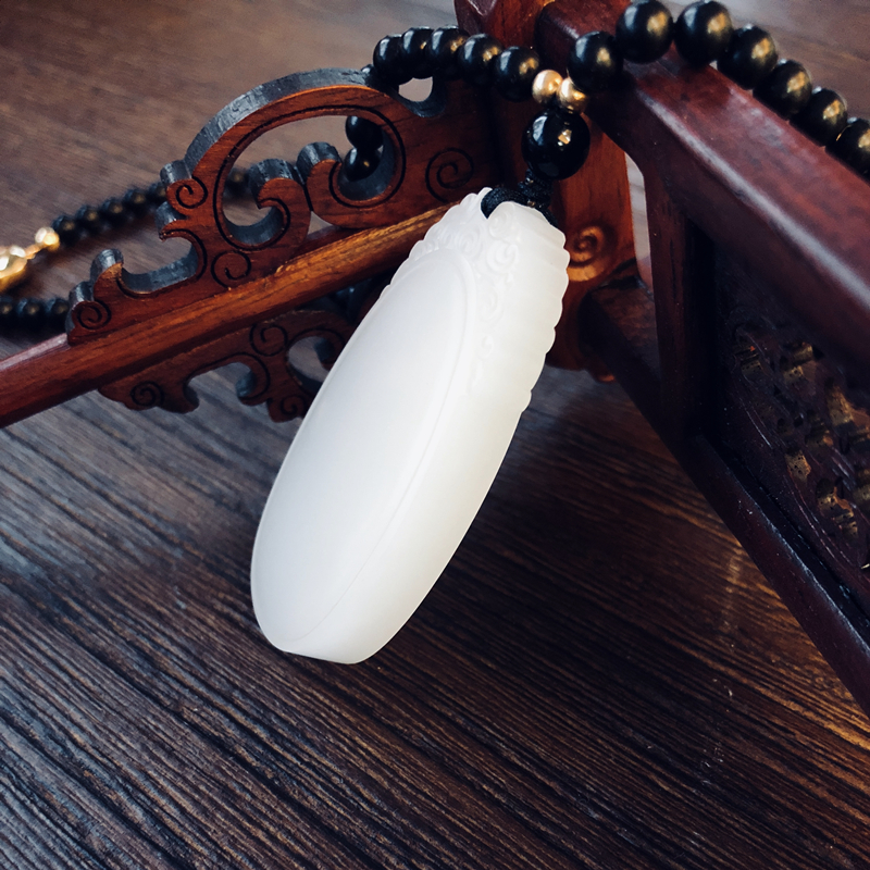 此方牌取材自玉龙喀什河源头上好白玉中的羊脂白玉,名家雕刻,天蜀牌挂件,因料子较大,可以作手把件把玩。总所周知,名家对料子颇为讲究,君子爱玉,惜玉。玉不琢不成器,在玉雕界素有,料chao一等,价差十倍;工chao一等,价差十倍;意chao一等,价差十倍的说法。从收藏角度来看,作品必须是料DING级,工DING级,意DING级,达到了这三点才能叫收藏级籽料作品。其次块度(重量) 原料有一定的块度,越大越难得,价值也越高