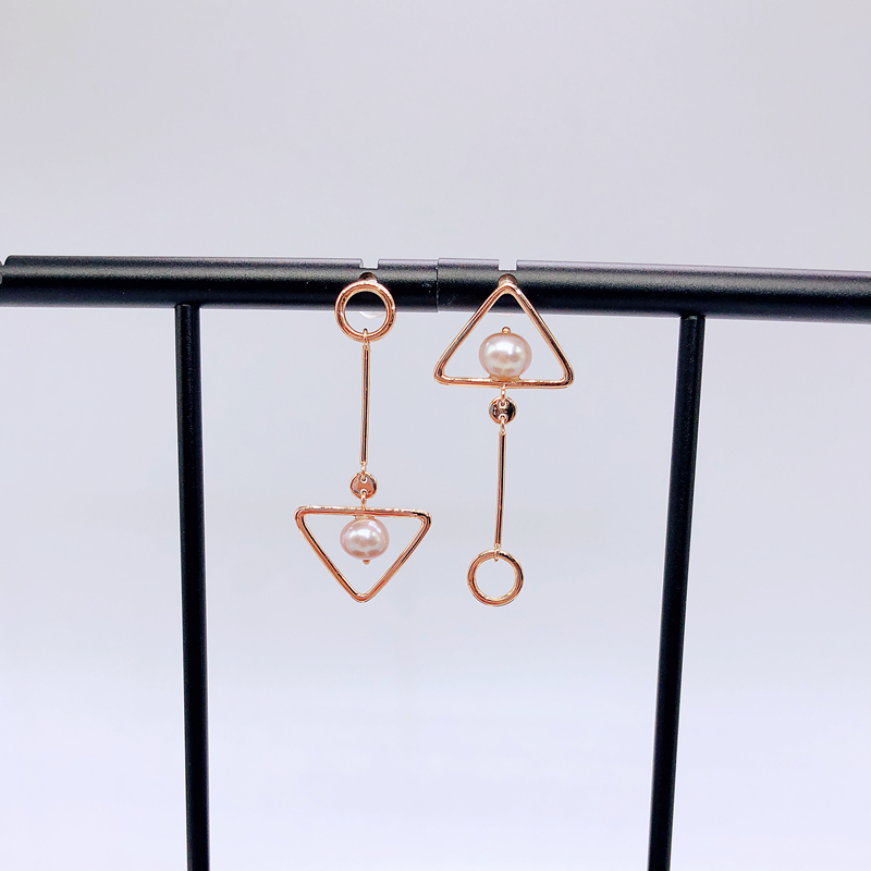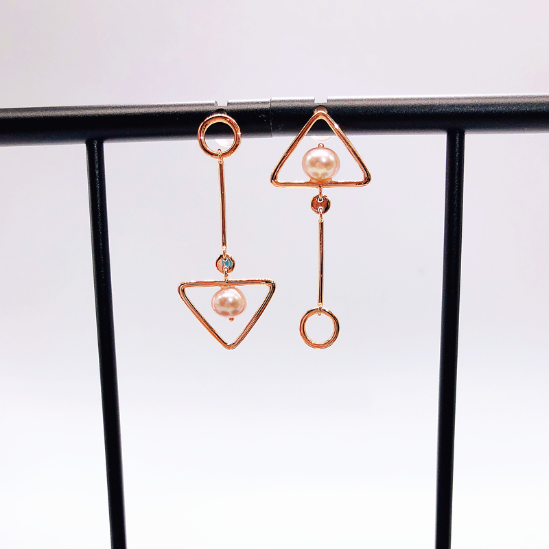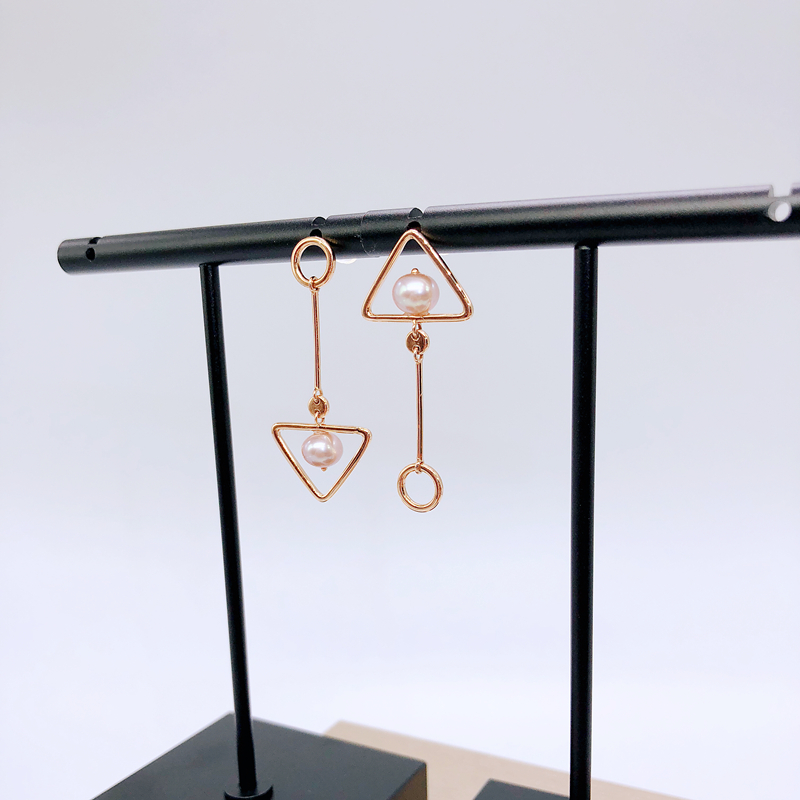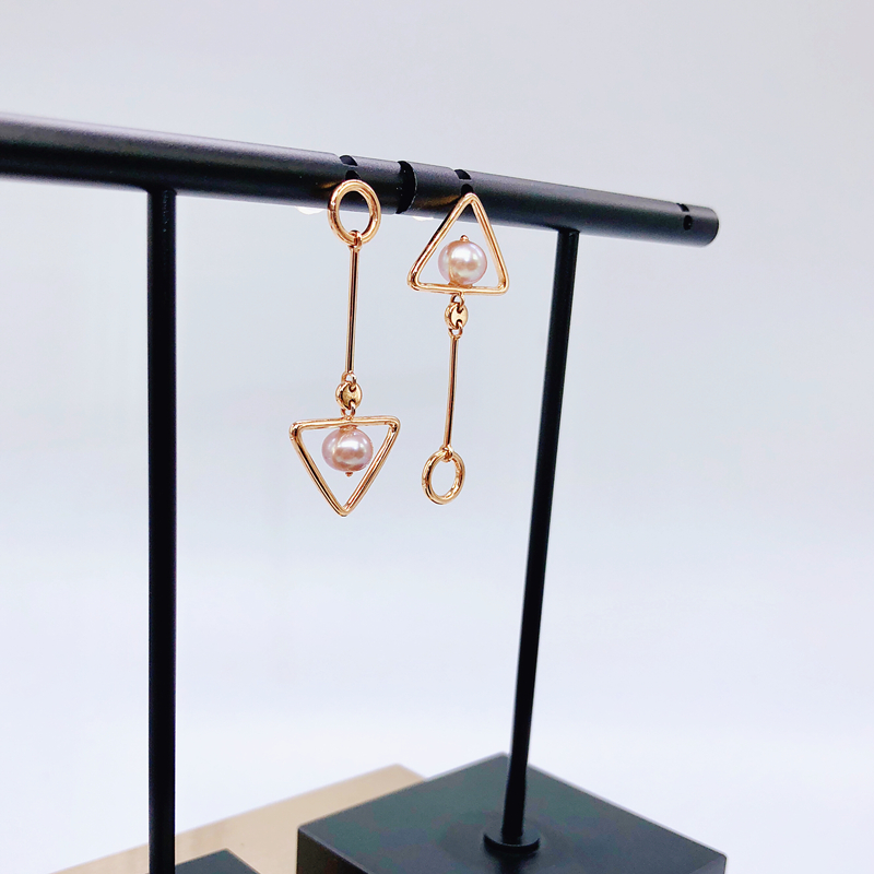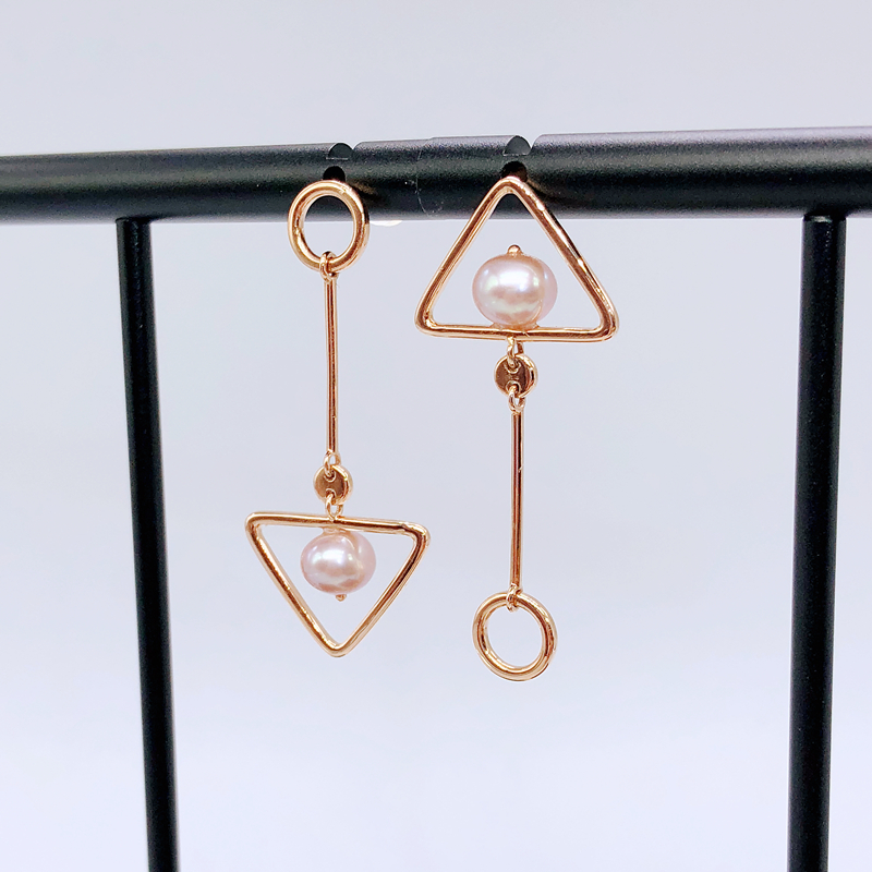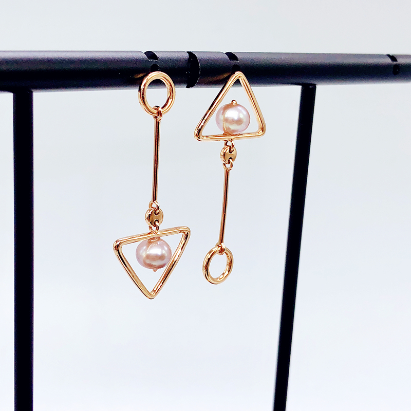18K金珍珠耳坠玫瑰金耳环不对称设计三角形圆形