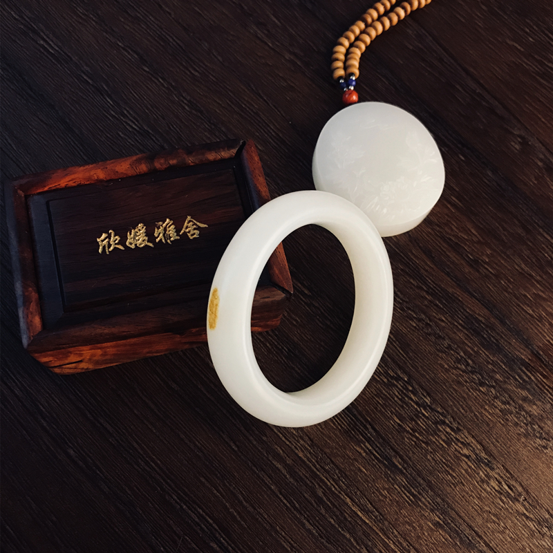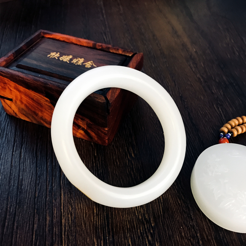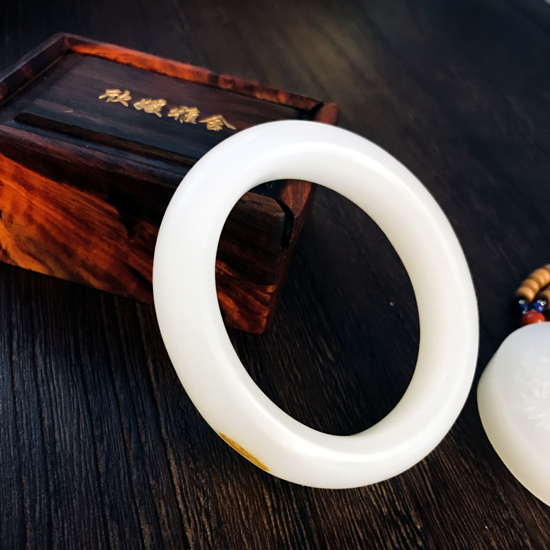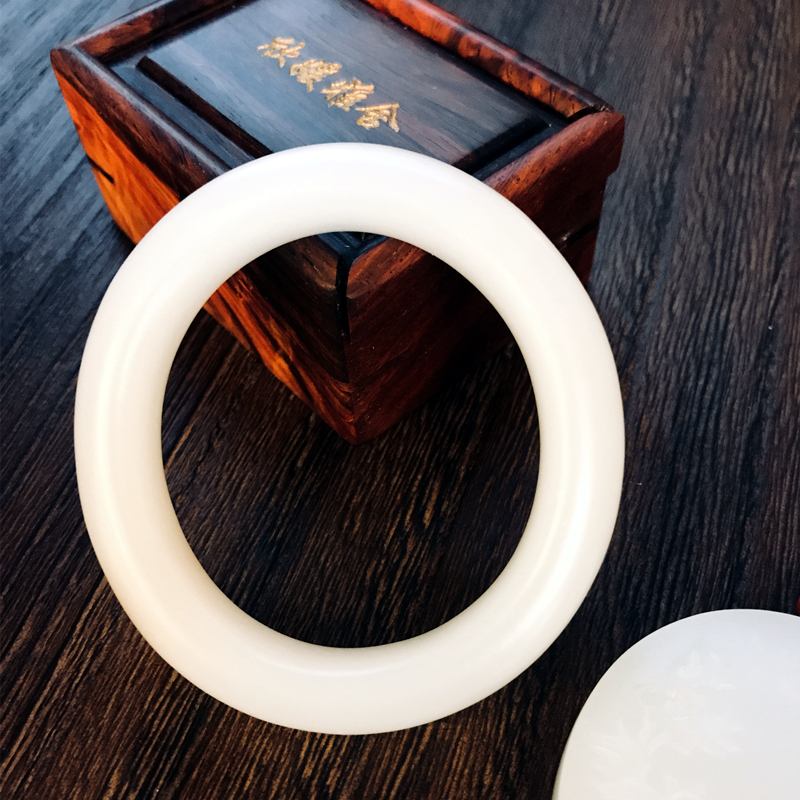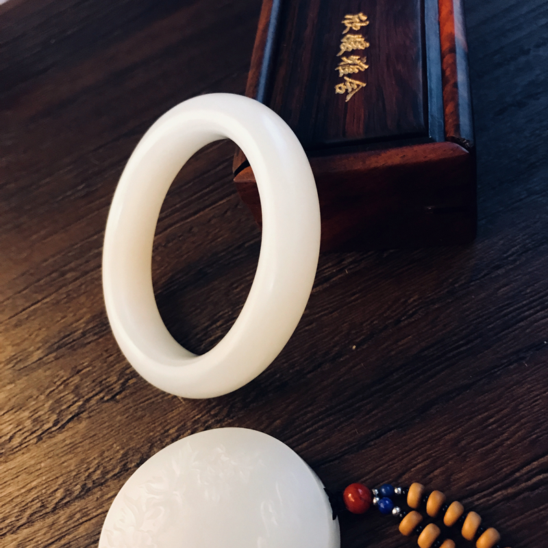 此和田籽料玉镯取材自玉龙喀什河源头上好白玉中的羊脂白玉。总所周知,名家对料子颇为讲究,君子爱玉,惜玉。玉不琢不成器,在玉雕界素有,料chao1等,价差十倍;工chao1等,价差十倍;意chao1等,价差十倍的说法。从收藏角度来看,作品必须是料DING级,工DING级,意DING级,达到了这三点才能叫收藏级籽料作品。其次块度(重量) 原料有一定的块度,越大越难得,价值也越高。