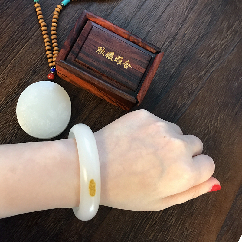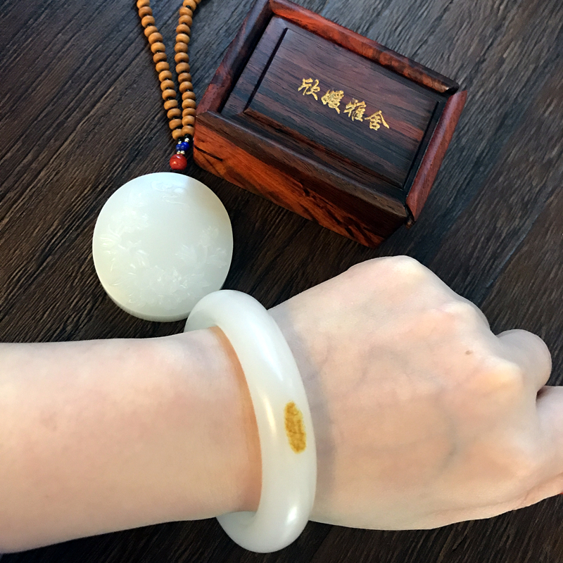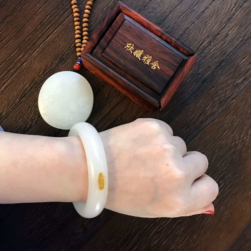 贵妃玉镯尺寸:52号圈, 适合小手美女哦~