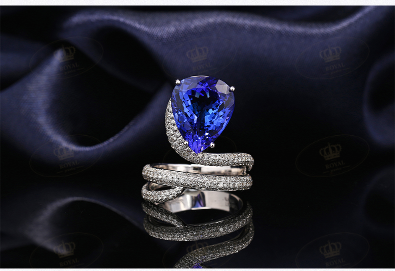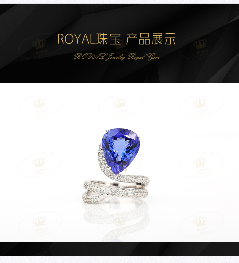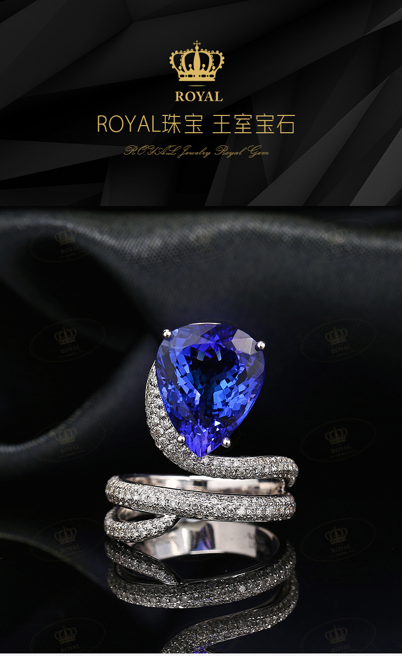 ROYALJEWELRY7.66CT坦桑石钻石戒指女戒个性设计风格惊艳亮相入门收藏