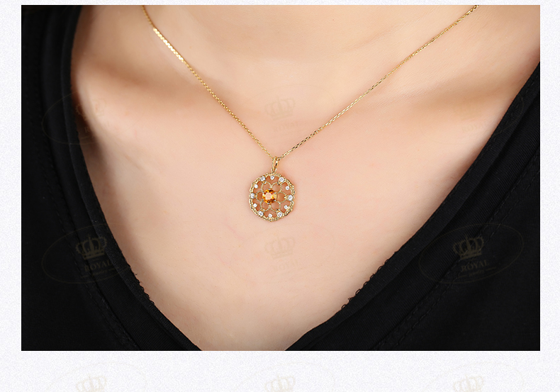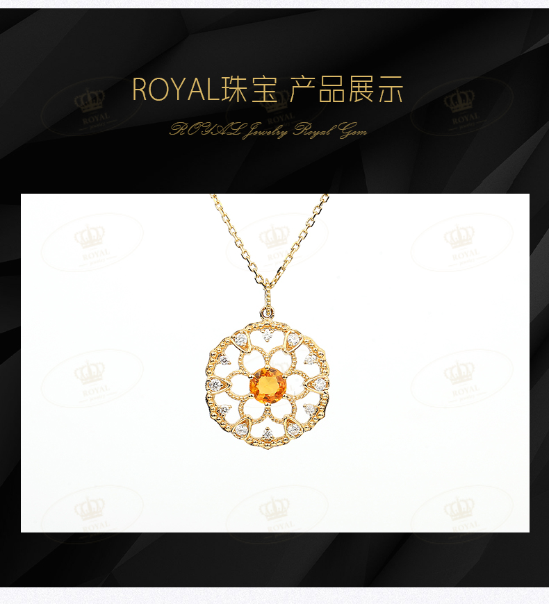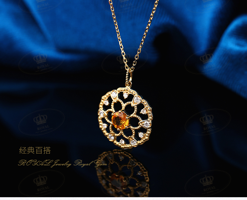 ROYAL JEWELRY橘色蓝宝石项链女锁骨链轻奢18K金项链橘蓝宝0.5克拉钻石0.15克拉