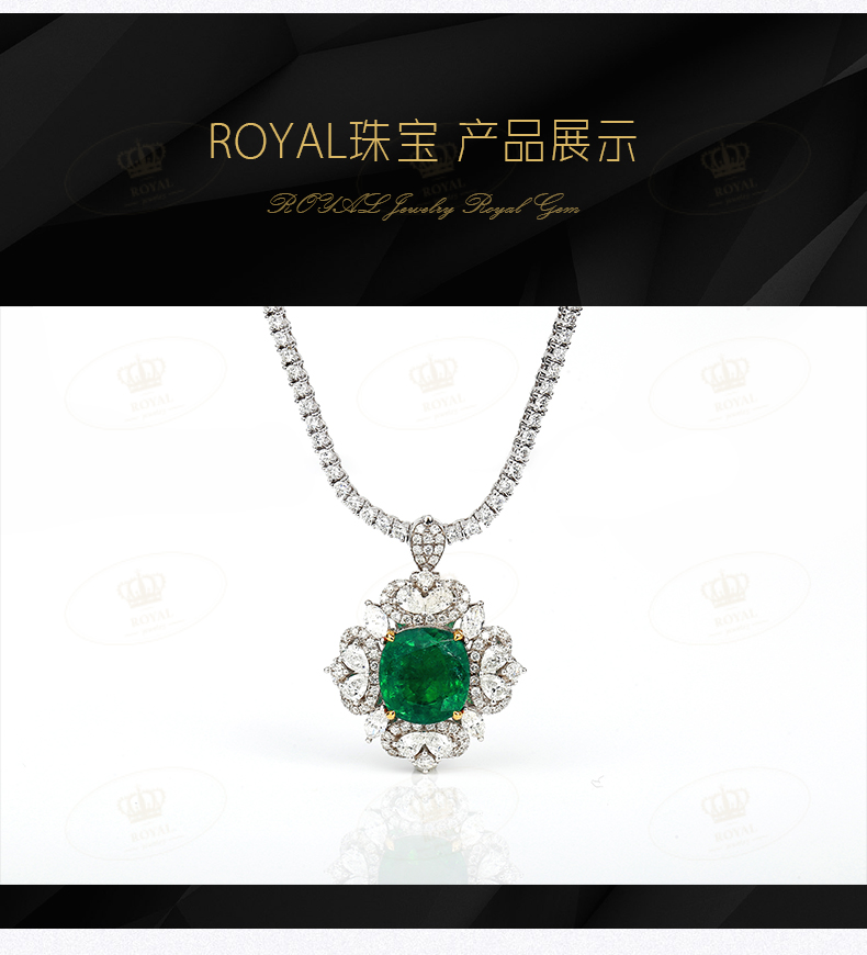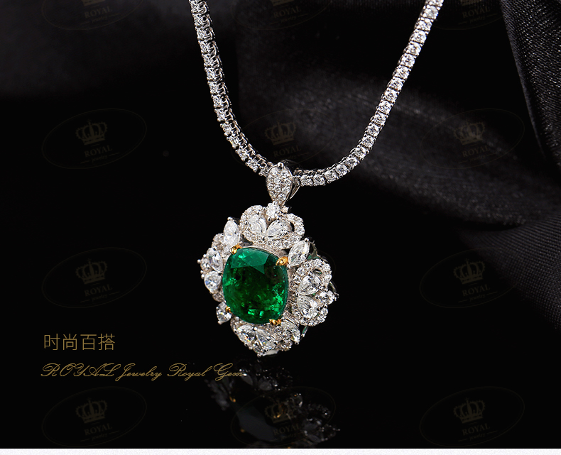 ROYALJEWELRY5.32CT天Ran无油祖母绿项链戒指戒指两用款钻石18K金托
