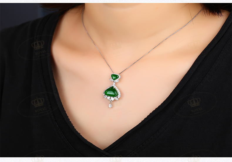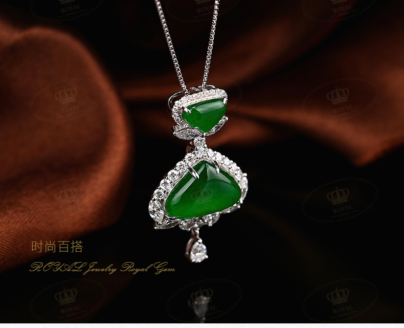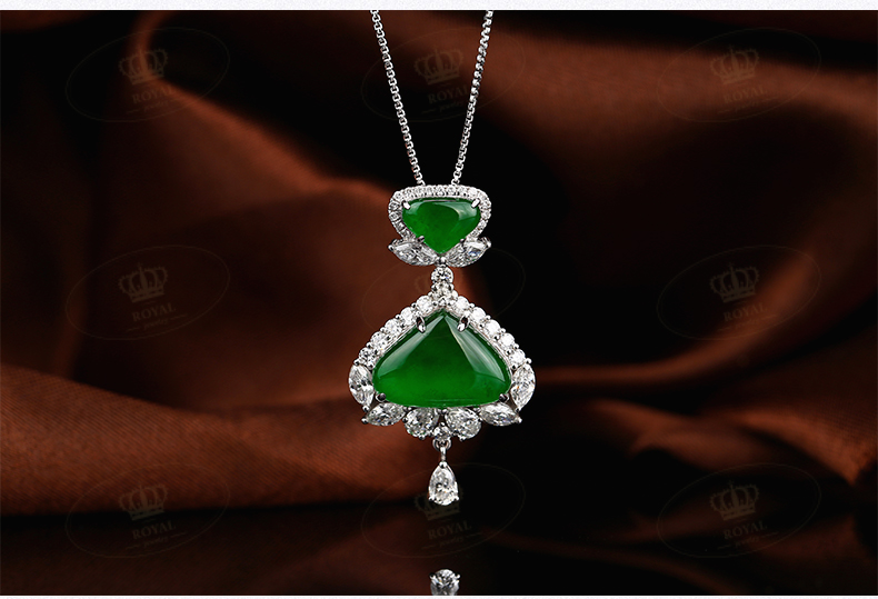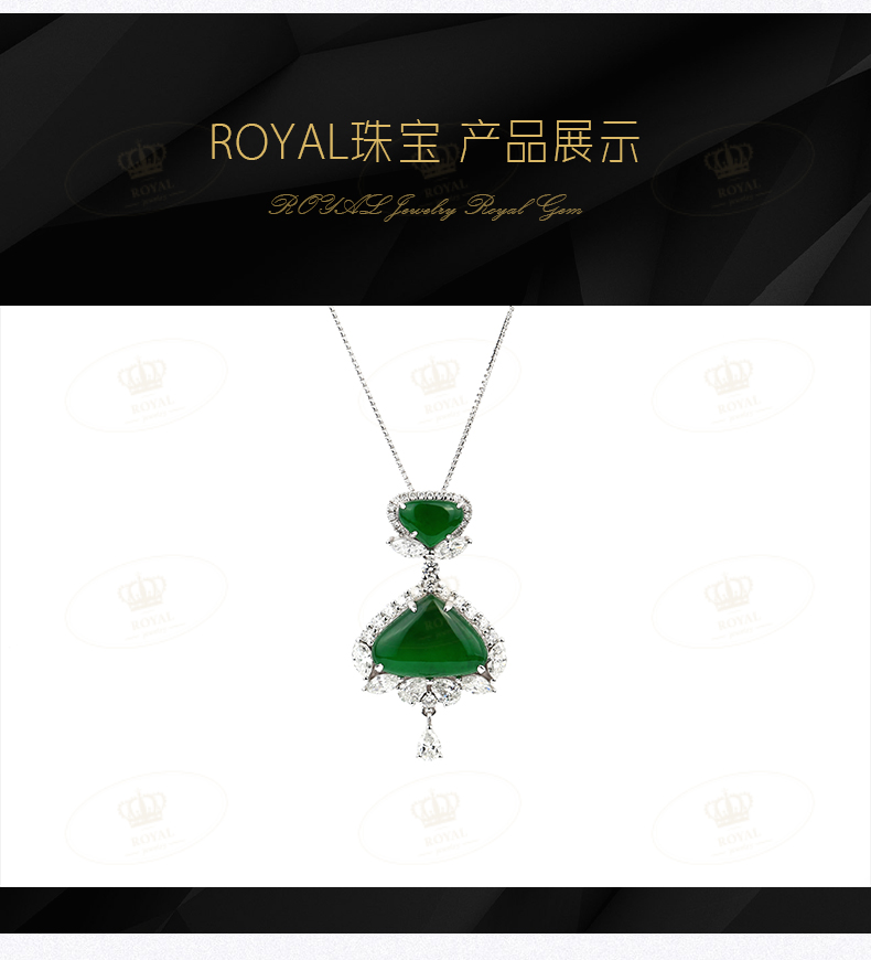 ROYAL JEWELRY翡翠项链缅甸天然A货翡翠老坑帝王绿二合一翡翠吊坠项链锁骨链18K金,高级白水滴马眼钻石镶嵌钻石:15811RE27喜欢的小伙伴不要错过哦~~小店还有很多彩色宝石裸石,珍珠裸珠,钻石裸颗。可以定制你喜爱的款式!欢迎到实体店品鉴,试戴,看实物!私人定制,收藏品鉴赏,私信店主V18121271984