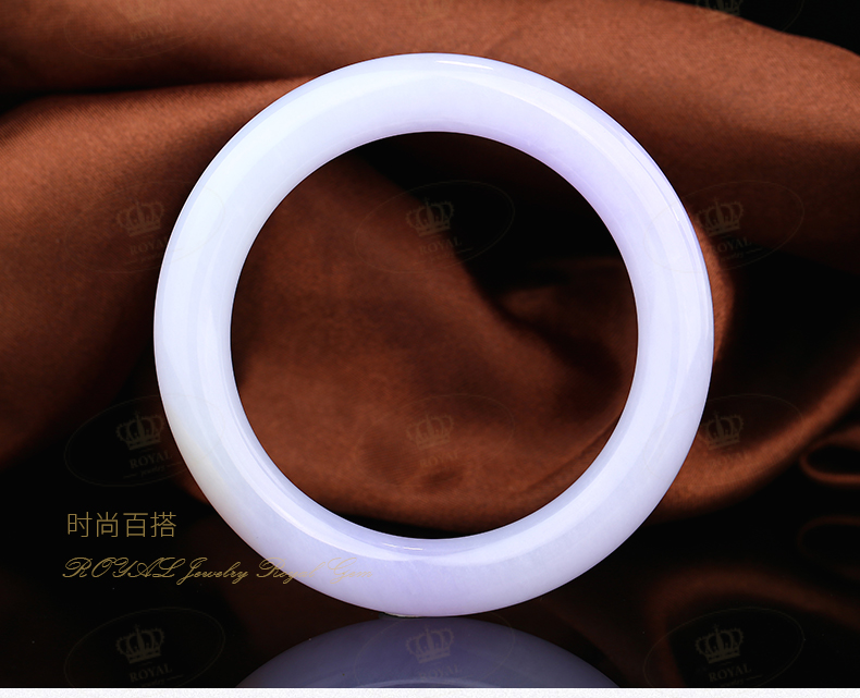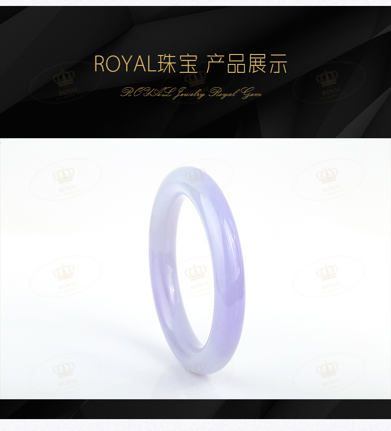 ROYALJEWELRY紫罗兰翡翠圆条手镯冰种手寸55.7高贵紫阳光下不失紫