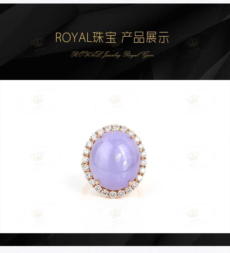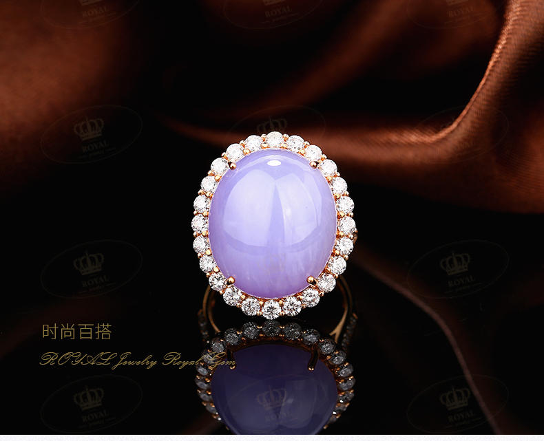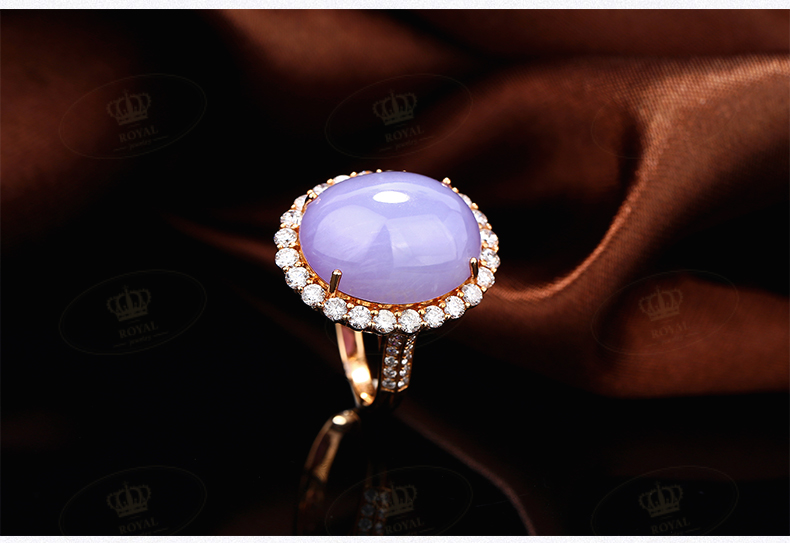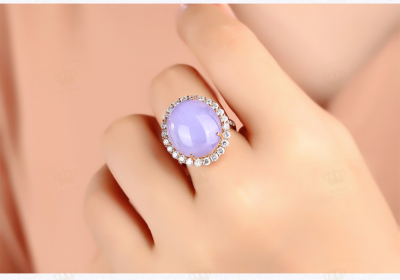 ROYALJEWELRY紫罗兰翡翠蛋面女款戒指18K金钻石镶边成品厚11mm18k