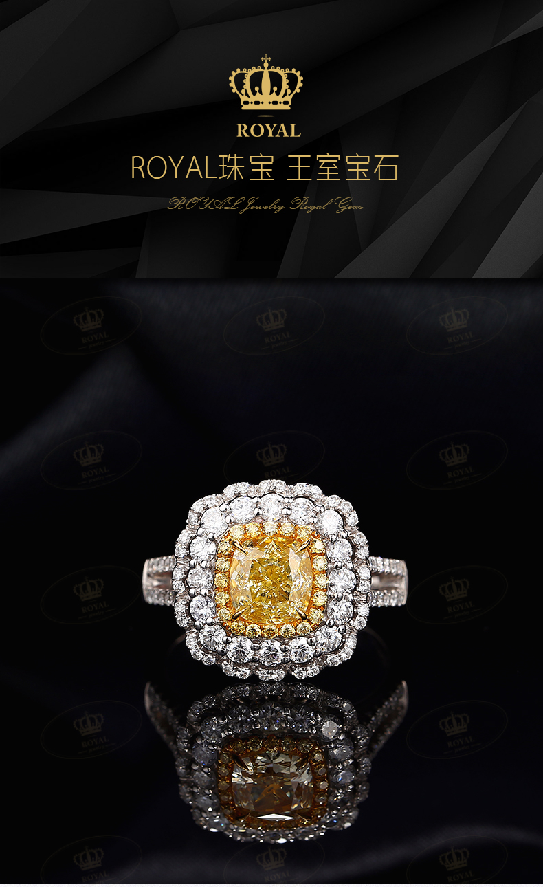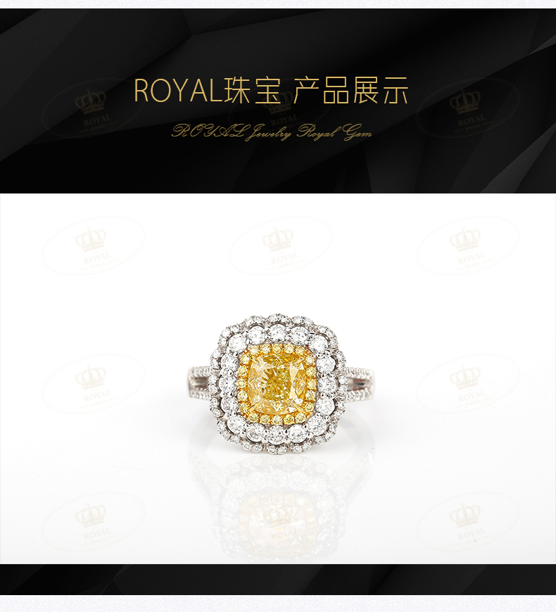 ROYAL JEWELRY黄钻戒指1.25克拉黄钻戒指 FY VVS2 EX VG副钻0.972克拉女款钻戒
