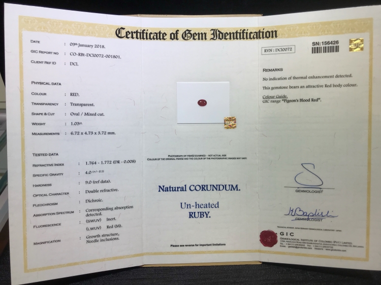1.03克拉天然无烧红宝石