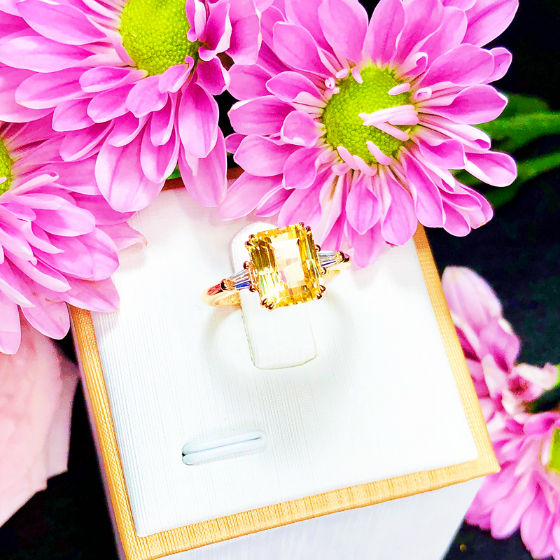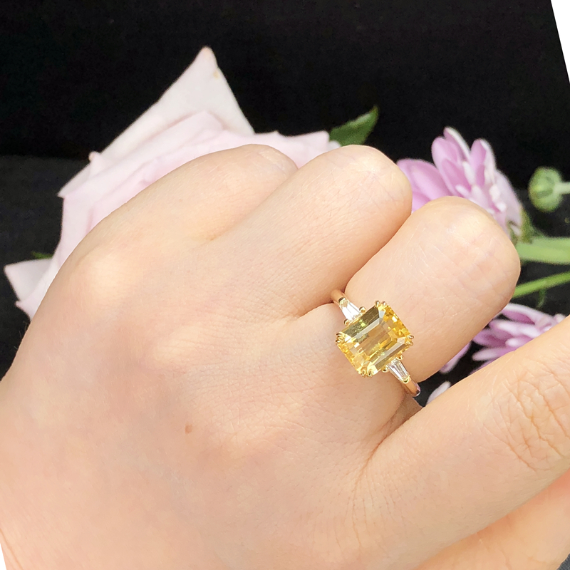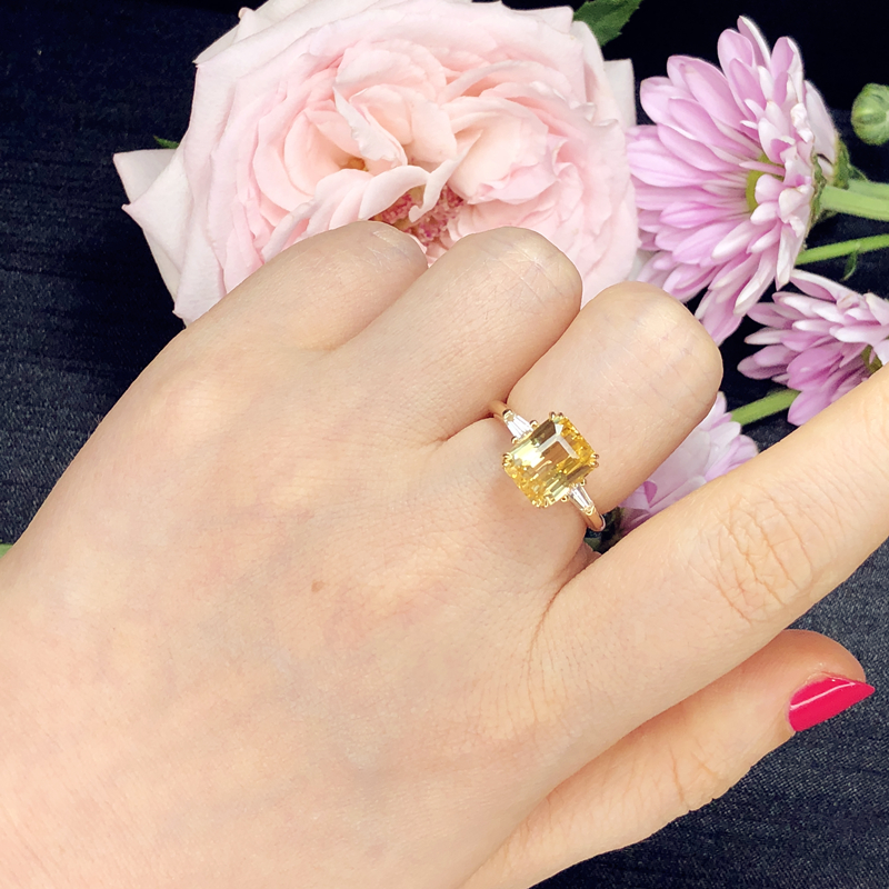 4.0克拉 黄色蓝宝石戒指,颜色Vivid Yellow,切割很完美,火彩超级闪,很饱满的全净玻璃体!比黄钻还美啊,生于刚玉的贵族,价格却很平易近人,性价比相当高,趁她还在低估的价格,赶紧收了她吧!