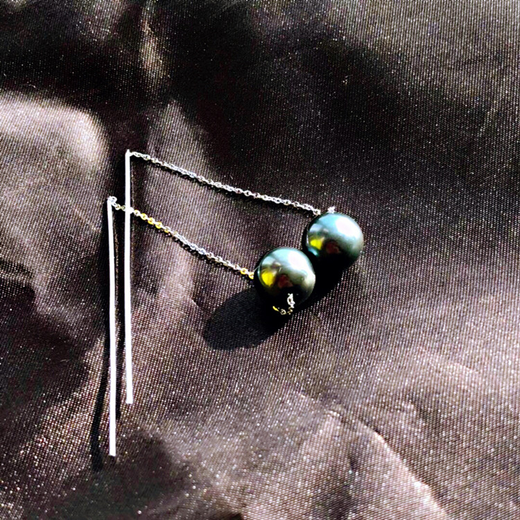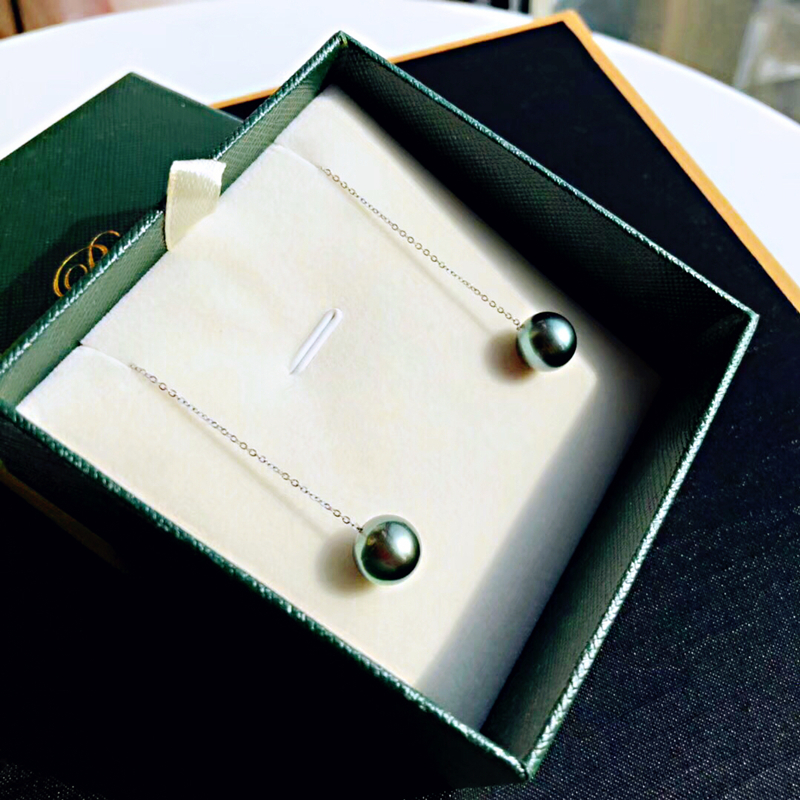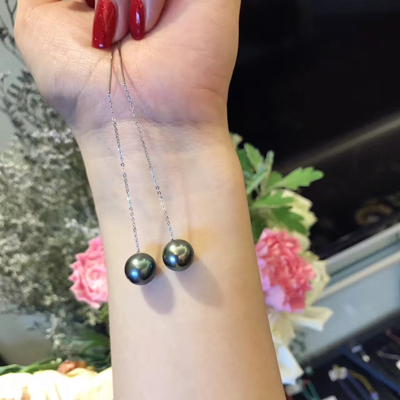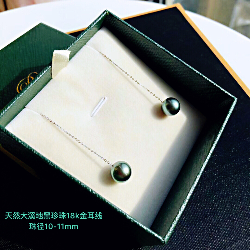 大溪地黑珍珠耳环,耳线款,都是极绿品质,10mm珠径,极微瑕,但颜色极好!18k白金,带国检NGTC证书!戴起来真心好看哦,大方,简单,百搭款哦~