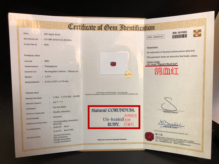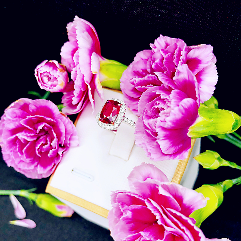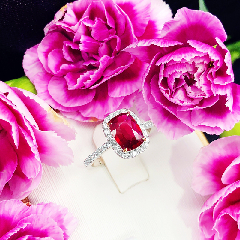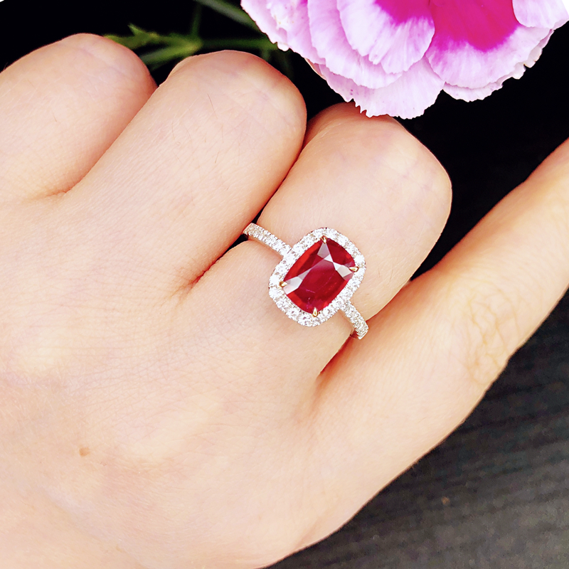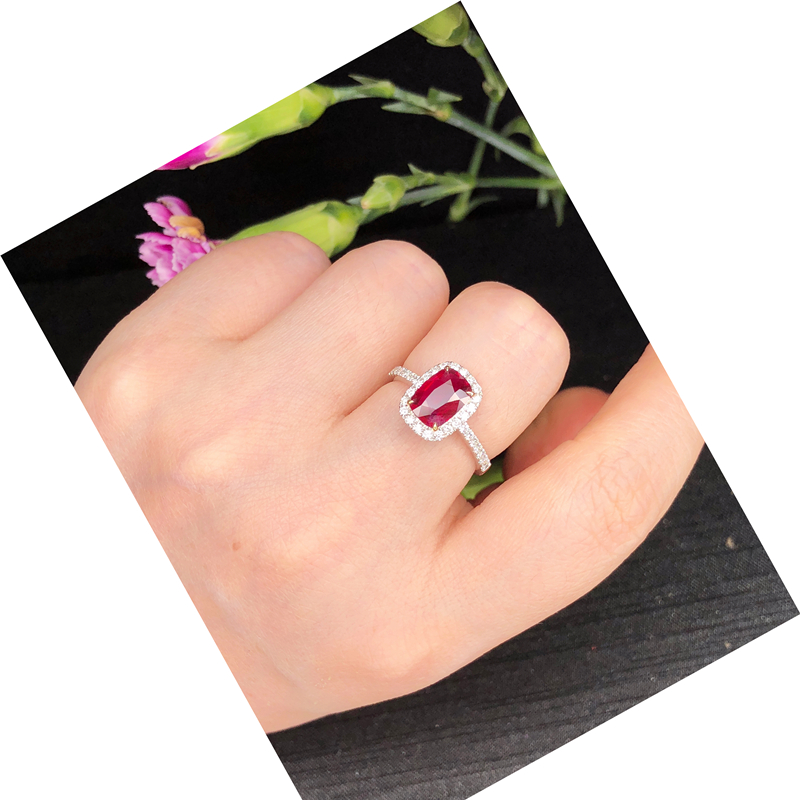高级珠宝天然无烧鸽血红宝石1.31克拉戒指女18k金彩色宝石定制